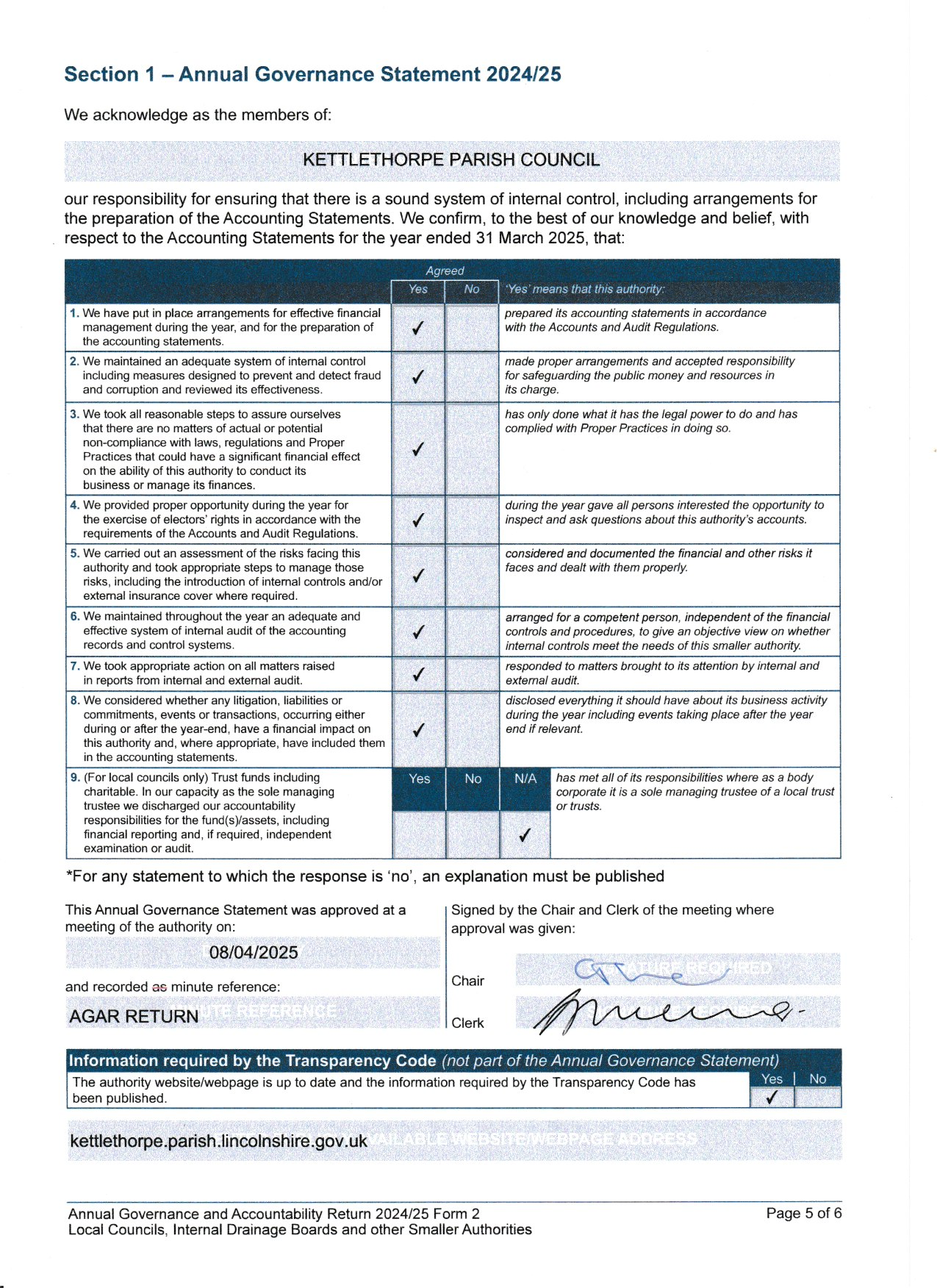 2024-25 AGAR Annual Governance Statement