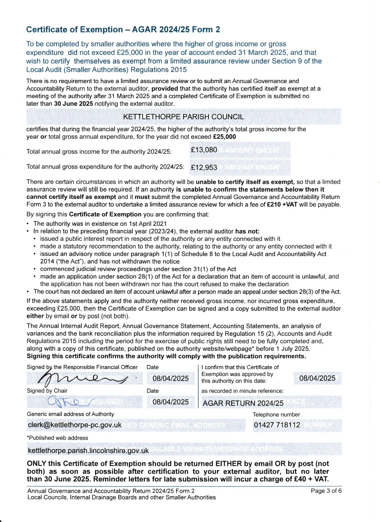 2024-25 AGAR Certificate of Exemption